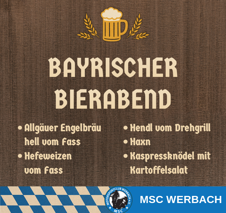 Am 25. Oktober 2025 heißt’s wieder: O’zapft is!Der MSC Werbach lädt herzlich ein zum Bayrischen Bierabend in der Tauberhalle (Untergeschoss).Ab…